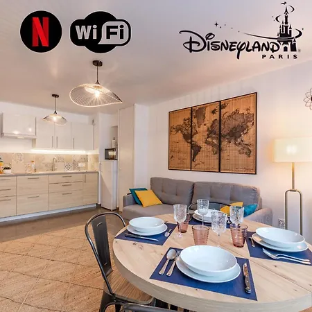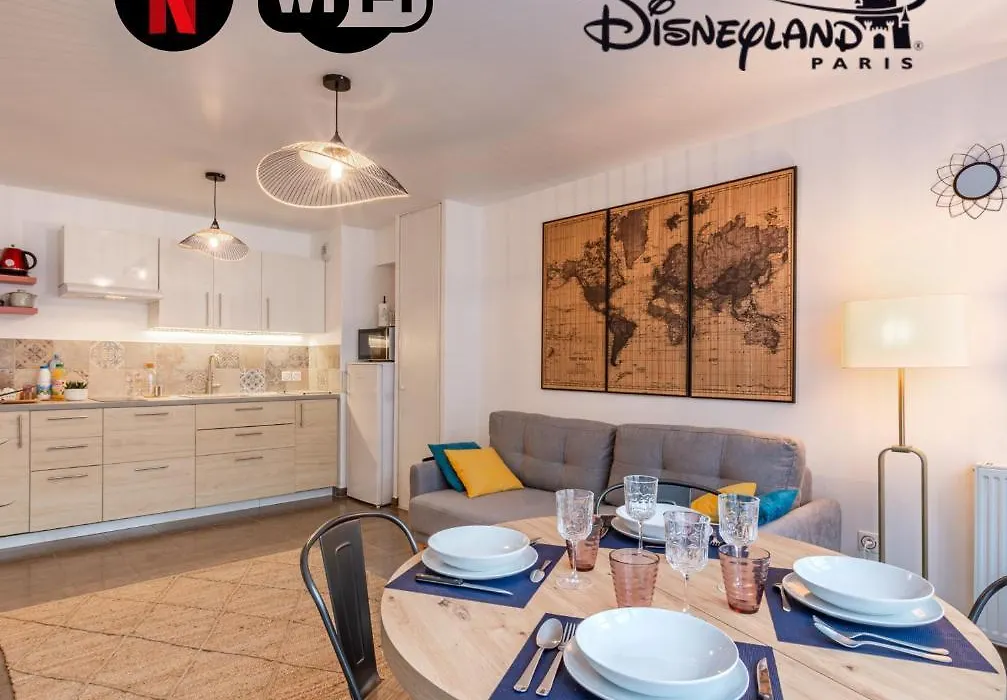Az Appartement Cosy Tres Proche Disney apartman kínál egy teljesen felszerelt konyhát, valamint szobákat személyes széfet, öltözővel és kanapéval. Az ingatlan 2 km-re van a Buffalo Bill területétől, míg a Disneyland 2,1 km távolságra.